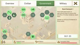 Rebel Inc political simulator with elements of economic strategy. The game is available on Android devices.